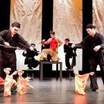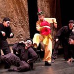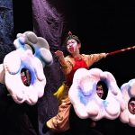 “Monkey King Goes Bananas” takes shape in the rich mythological air of a classical and classic Chinese fiction. It also borrows enormous symbols and elements from Beijing opera and combines them with rod puppets, string puppets, and table-top puppets. To create an extraordinary performance on stage, the playwright introduces the humorous style of dialogue of Beijing opera and blends it with the particular motions of the puppets. The incredible management of the director makes the magic happen on and off the stage. The design of the puppets, on the other hand, is meant to highlight the personality of the characters by abundant types of puppets so as the make the characters more alive. Above all, the audience could appreciate every visual detail on stage: the delicacy of the puppets, their colorful costumes, and the corresponding images. Also, the music that draws inspirations from both the East and the West creates a unique atmosphere for this play. The stage thus becomes a space of light and shadow, reality and virtuality, philosophical contemplation and playful motion. This is a play that invites your sensitive attentions.