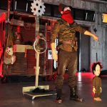 Mother Courage, an anti-war classic by Bertolt Brecht, is a collaboration with Colectivo Cuerda Floja from Mexico. The performance takes place at Chung Hsing Cultural and Creative Park, Yilan, while the industrial architectural style of the hundred-year-old paper factory sets the tone for the staging of the scenes. It combines puppetry, music, dance, and installation art to represent a discourse on survival, and the battlefield becomes the banging storm of gunshots of smoke visualized largely with artifact toys of “war machines,” including sirens, machine guns, centipede machine, brain washer machine, etc. The visual center of the stage is a huge push wagon about 6.5 square meters, and each angle presents a scene. With actors busy in moving around the wagon and moving the wagon around, it symbolizes how the civilians have to take immediate reactions to the war or warlike situations of turmoil and unrest and to find a way to continue their lives. Meanwhile, metaphors such as roses and kites softly and gently transform the cruelty of war and what it has taken away with it, creating a fascinating imagination and aspiration. Mother Courage is an inspiring and encouraging theatrical sketch, which brings peace to those who have died in the war as well as opens up a window for the Taiwanese audience to shift our attention to the global issues beyond the island.